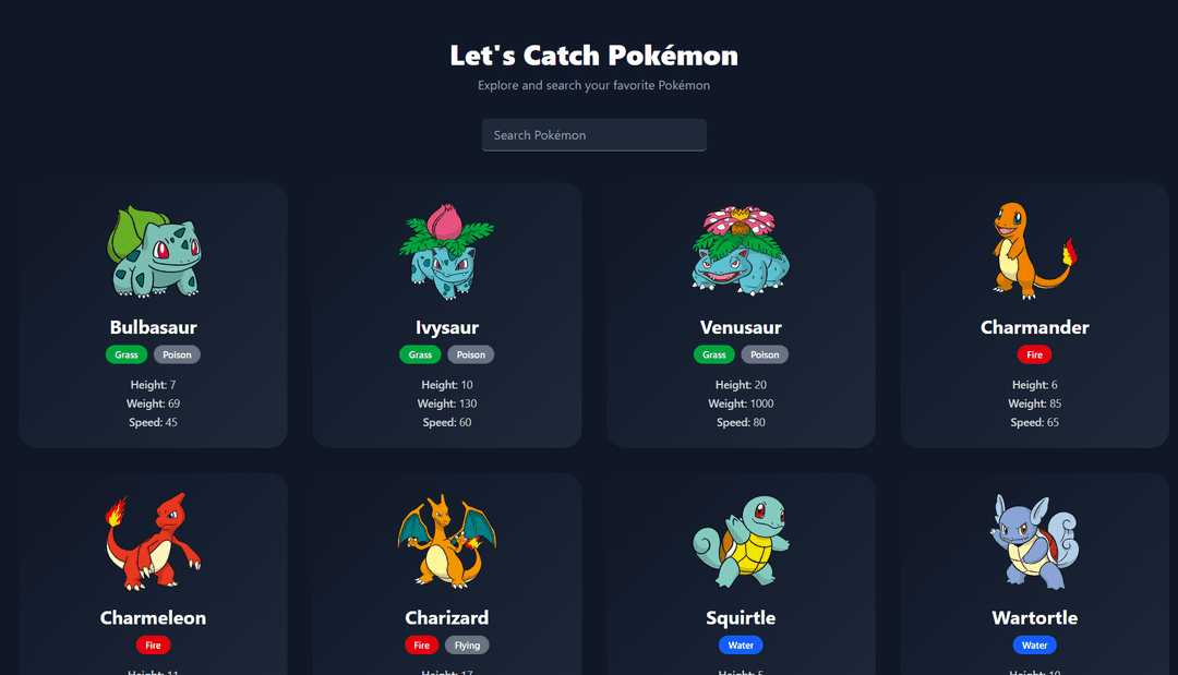 Built a dynamic Pokémon explorer app using React, Vite, and Tailwind CSS, leveraging the PokéAPI to fetch and display data in real time.
